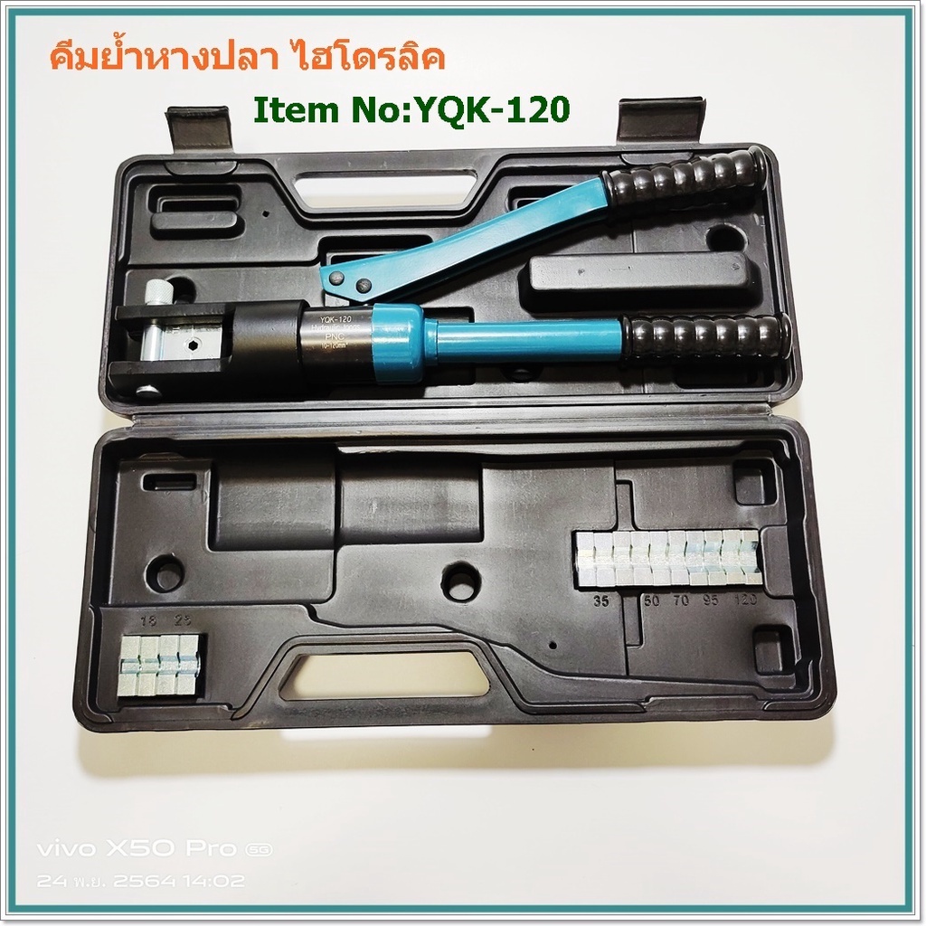 Slideshow คีมย้ำสายไฟไฮดรอลิค yqk-120 12ตัน คีมย้ำหางปลา คีม คีมย้ำสายไฟ lazada